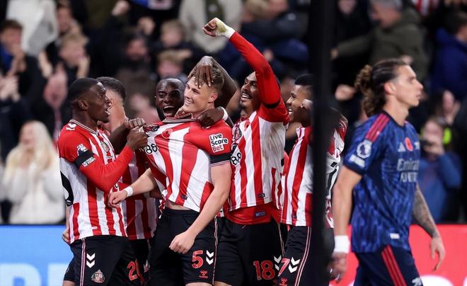 10月份以来的阿森纳打出了出彩的10连胜成绩,而且防守端更是8场比赛没有进球,只是本轮遇到了大黑马桑德兰不仅终结枪手的零封纪录,还终结阿尔特塔的连胜步伐。第36分钟,穆杰莱头球接应自家门将长传摆渡,巴拉德乱战插上破门,阿森纳便处于落后局面;下半场第54分钟,赖斯抢断,梅里诺助攻,萨卡低射扳平比分。第74分钟,特罗萨德禁区前沿施展个人能力晃开空当轰世界波,2:1!